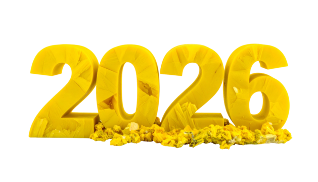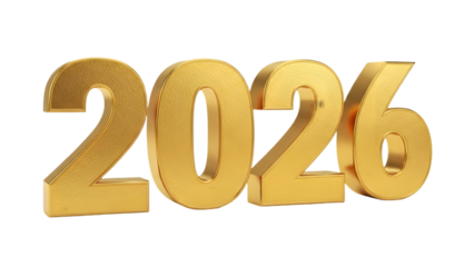 Gold 3 D numbers 2026 isolated on a transparent background metallic