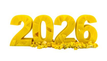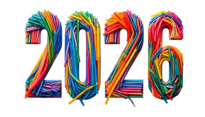 Stylized, colorful year "2026" with textured brushstrokes against black