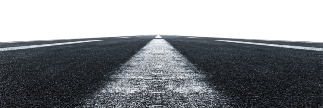 On a transparent background, there is an empty asphalt road with a wide width
