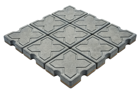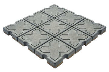Square concrete brick paver with multiple indentations isolated on a transparent background