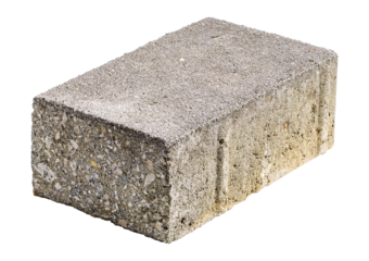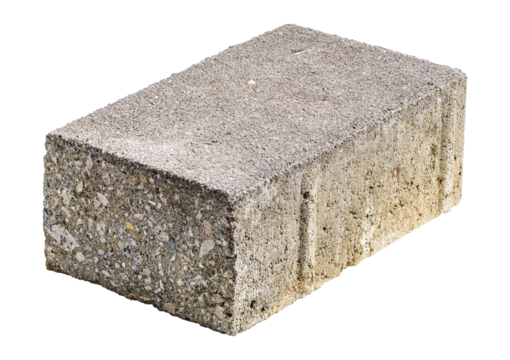 Individual grey stone paver forming a solid building material block with rough texture on a transparent background