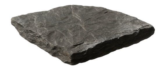 Square slab of rough dark stone, resembling flat rock or paving stone, isolated on transparent background.