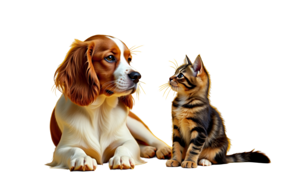 Adorable smiling cartoon dog with fluffy fur on transparent background