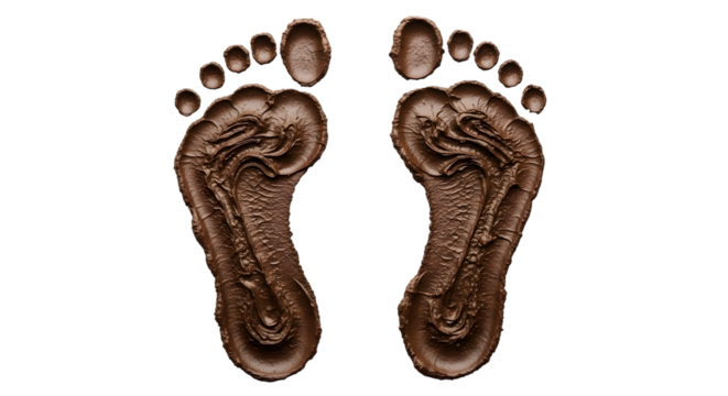 A collection of muddy boot prints resembling cookies on a, transparent background