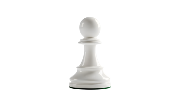 Elegant white marble chess pawn piece isolated on black background for strategic games and creative design concepts