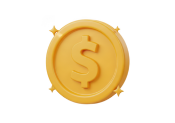 3d icon of golden dollar coin isolated on transparent background, a symbol of wealth, finance, and prosperity, ideal for illustrating financial concepts and investment