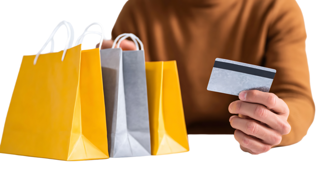 Cashless payment concept with wallet, ticket, and credit cards transparent