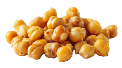 Chickpeas piled together on a white background, depicting a healthy plant-based protein option.