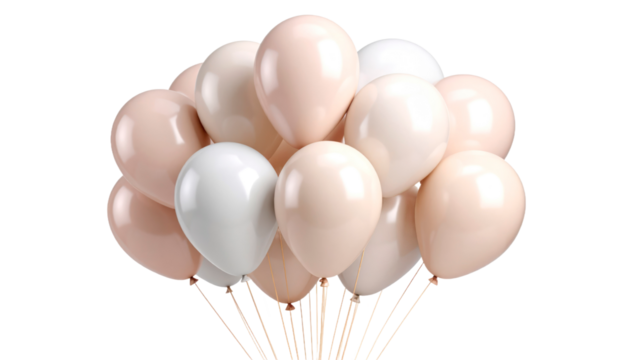 Collection Of Pastel Peach And White Balloons Floating Against Transparent Background Isolated
