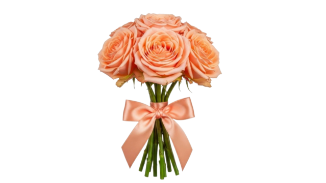 Heart shaped floral arrangement made of pink and peach roses romantic symbol of love for Valentines Day or wedding celebration isolated on transparent background