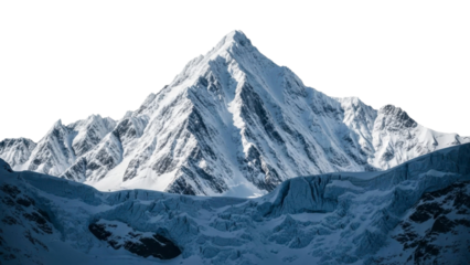 Majestic snow capped mountain peak and rugged glacier on a transparent background, PNG image, PNG file