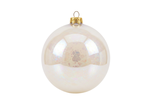Iridescent Christmas ball isolated on transparent background, pearly bauble for holiday decoration and festive design