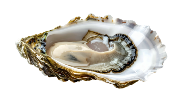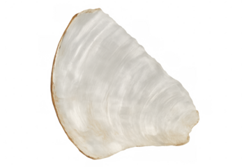 Close-up of an empty oyster shell, showcasing its delicate texture and pearly white interior, isolated on a transparent background