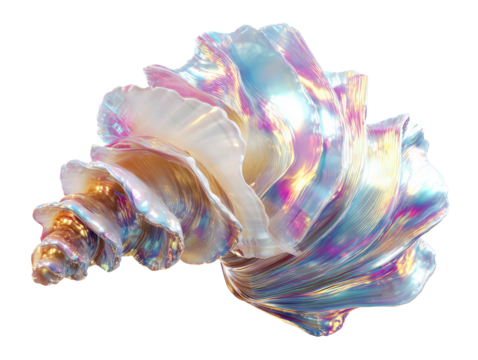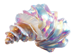 Rainbow Iridescent Seashell on White Background