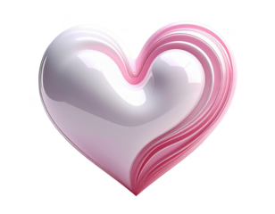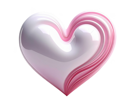 Abstract 3D heart with a pearly white and pink gradient,white background