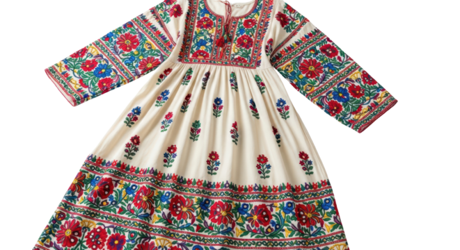 Traditional Romanian peasant dress for women with hand-stitched embroidery isolated PNG with Transparent Background