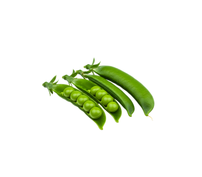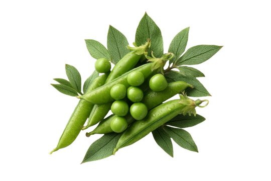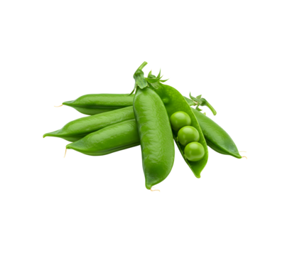 A fresh pile of vibrant green pea pods isolated on a transparent background, perfect for promoting healthy, plant-based ingredients and vegetarian food lifestyle visuals in high resolution.
