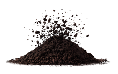 Flying Dirt and Scattered Soil pile isolated on transparent background. PNG file, cut out