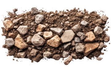 Gray gravel soil isolated on a white background shows a variety of textures. suitable for drainage Emphasize the natural gray color of the gravel soil
