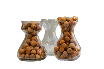 Clay pebbles for hydroponic gardening in a transparent glass vase