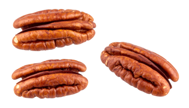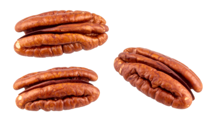 Set of three pecan nuts isolated on transparent background