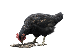 Brown hen pecking food isolated on a transparent background chicken white spots