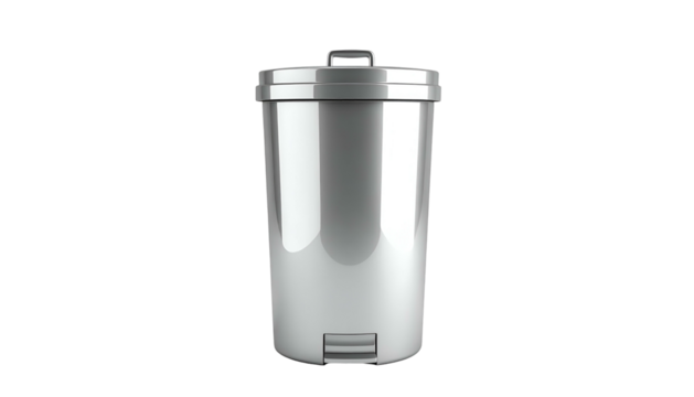 Stainless Steel Trash Can with Foot Pedal on Transparent Background