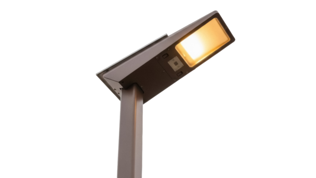 Modern street light isolated PNG on transparent background, urban lighting fixture for city streets and pedestrian areas, energy efficient design