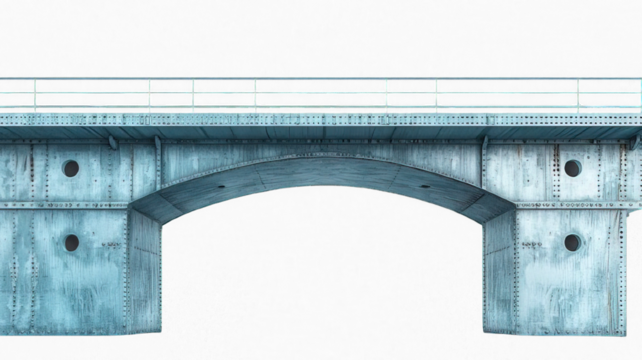 a weathered. rusty metal bridge with an arched design. emphasizing its structural elements and aged appearance the bridge appears to be a pedestrian crossing. highlighting its purpose for transportati