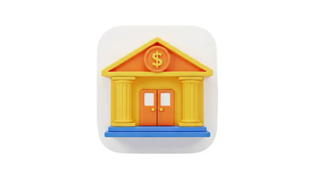 3D Bank Icon with Dollar Sign on transparent background