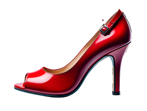 Shiny red peep toe high heel shoe with ankle strap isolated on a transparent background image