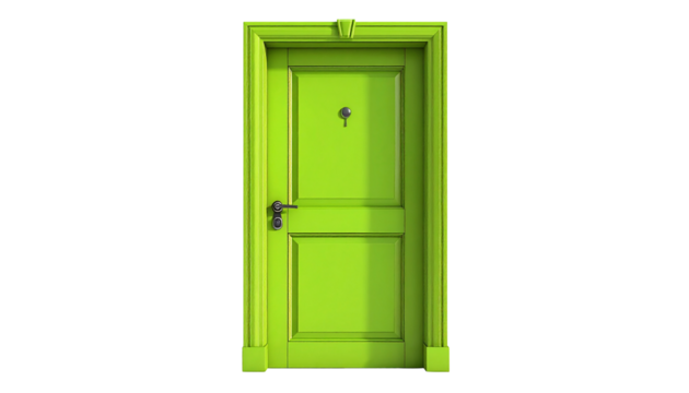 Green framed door on solid black