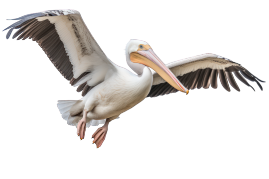 Graceful pelican with outstretched wings in flight
