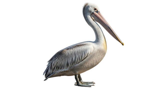 Isolated Dalmatian pelican standing tall, a majestic waterbird with elegant plumage and long beak