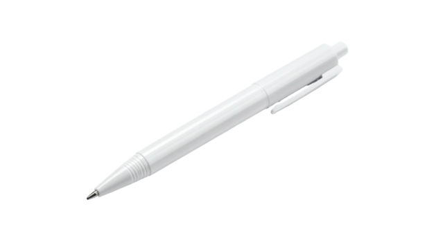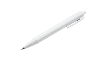 Silver fountain pen with cap and black ballpoint pen and white ballpoint pen isolated on a transparent background