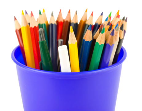 pencil case overflowing with colorful pencils isolated on transparent background