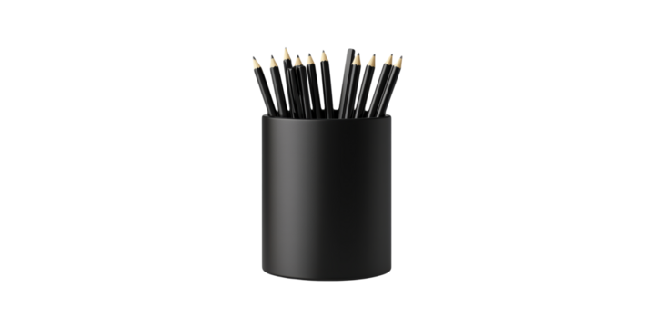 Black Pen Holder With Pens 3D Isolated on Transparent Background