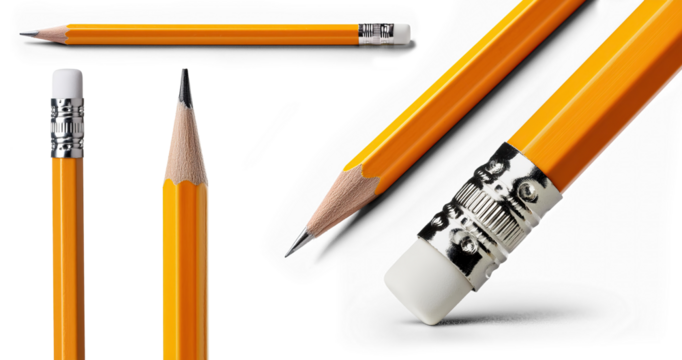Yellow pencil floating against transparent background with eraser