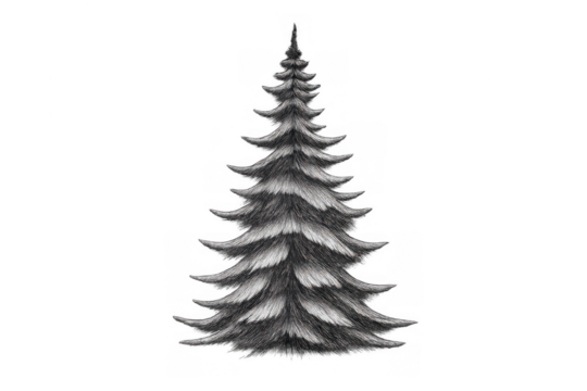 Fir tree pencil drawing creating concept of winter forest landscape, hand drawn pine tree illustration on transparent background