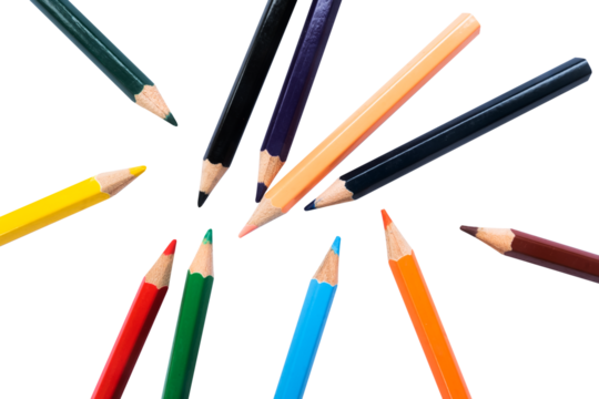colored pencils background isolated on a transparent background