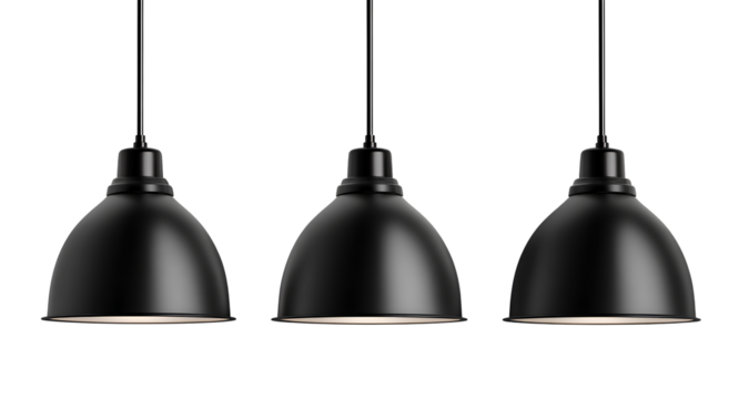 Multi-colored pendant lights in a row, illuminating, cut out transparent
