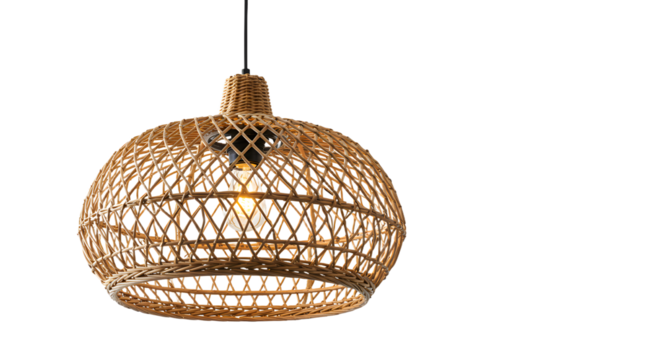 Elegant pendant lamp with lattice shade hanging on transparent background