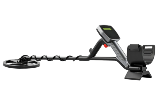 Modern electronic metal detector for finding treasure isolated on a transparent background