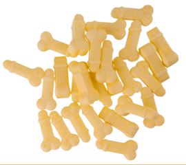 penis shaped candies on a white background. sweets penises top view