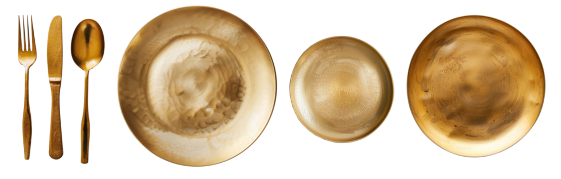 テーブル素材、金製の食器、背景透過