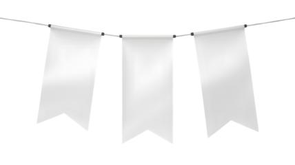 Blank White Pennant Flags on String – Empty Fabric Banners for Decoration or Design Mockup