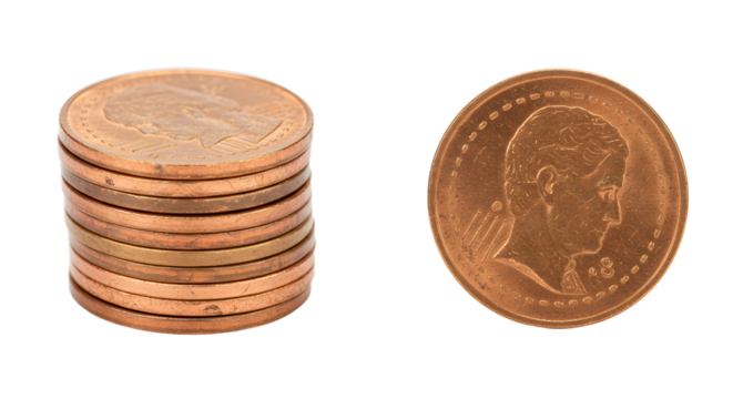 Pennies isolated on a transparent background, coinage, money, change, pennies in circulation, cash, copper, coin, making change, wall art, penny, US currency, numismatic, collection