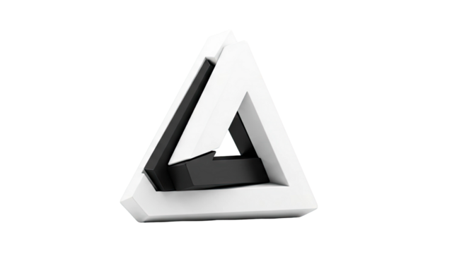 Impossible triangle creating optical illusion, black geometric shape, penrose object on transparent background