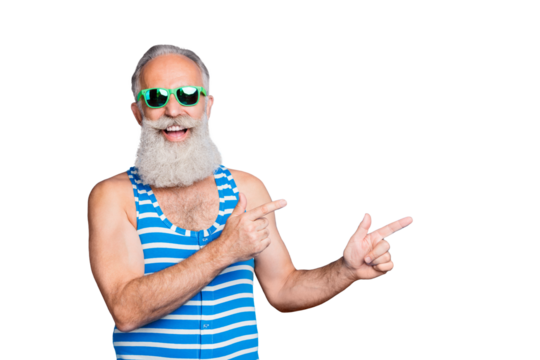 Portrait, artist and senior man with fashion, retro and funky sunglasses isolated on a transparent background. Face, pensioner and mature person with vintage outfit, retro clothes and png with style