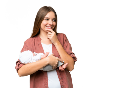 Pensive Asian Muslim man wonder about question isolated on transparent background